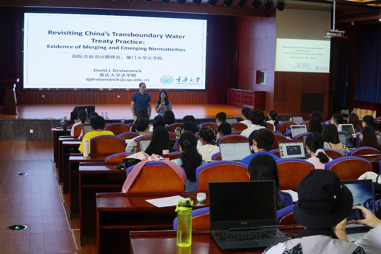 2021年7月16日上午,厦门大学法学院国际法专业2014级博士生、重庆大学法学院助理教授David J. Devlaeminck应邀做客第二届厦门大学国际法校友论坛系列讲座,在法学院模拟法庭做了题为《中国跨国水资源实践的再探讨:融合与新兴规范的证据》的精彩报告。讲座由David老师的博士生导师陈辉萍教授主持,法学院同学到场参加。